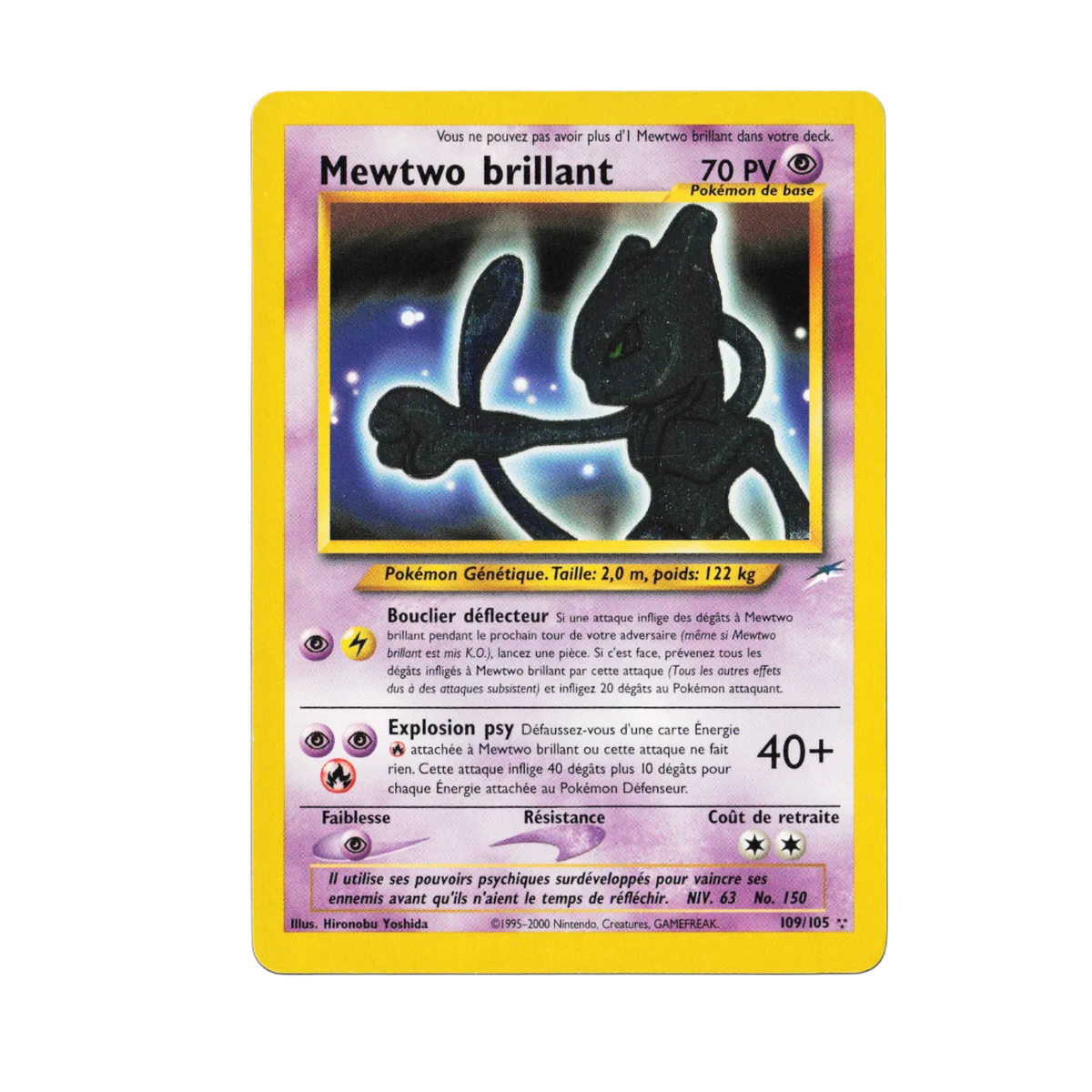 - Mewtwo (n°10/62) : le Pokémon légendaire par excellence. Ce Mewtwo holographique est distinct de celui du Set de Base et reste l'une des cartes les plus recherchées de l'extension. Son illustration et son attaque « Absorption » en font un incontournable de toute collection vintage.